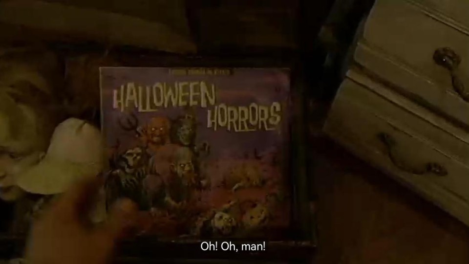 第四个故事:《Home Haunt》 7/10 ★★★★★★★ 《Night at the Museum》Went wrong 在7岁的Zack童年里,万圣节是与家人一同庆祝,讨要糖果,制作南瓜灯,以及与家人共同建造Dr.Mortis鬼屋,在鬼屋里有绿脸女巫,弹跳的吓人道具,还有小迷宫。但直到Zack长大之后,同学们嘲笑他的搞怪鬼屋之后便慢慢疏离了这项家庭活动。在妈妈的建议下,Zack和父亲Keith来到了当地的古玩店。嗯Keith在古玩店的台词还挺好玩的。并且顺走了古玩店的一张唱片。
