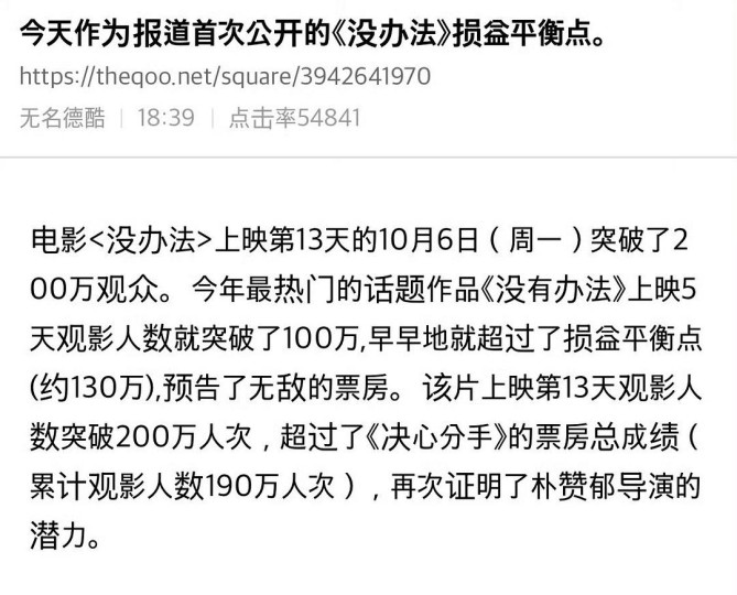 “玄彬的粉丝那么多,评分依然掉到5.2分,可见粉丝多是没什么用的……韩国观众也不太认可,如果认,票房不会是491万人次,而是941万人次才对,搞到最后离损益点500万人次尚差那么一线的距离,韩国观众太不争气了。”