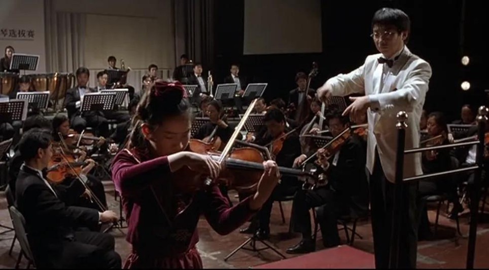 压轴音乐是余教授为她准备的参赛曲目柴可夫斯基的《D大调小提琴协奏曲》。其旋律动人,纯真朴实,那种浓郁的忧伤感恩色彩,配着轰鸣音效,震人发聩!